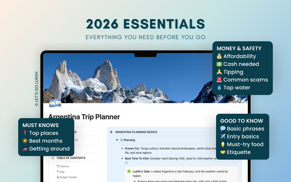 A thoughtfully designed Argentina trip planner with a ready-to-use itinerary, based on recent firsthand travel and updated for 2026.