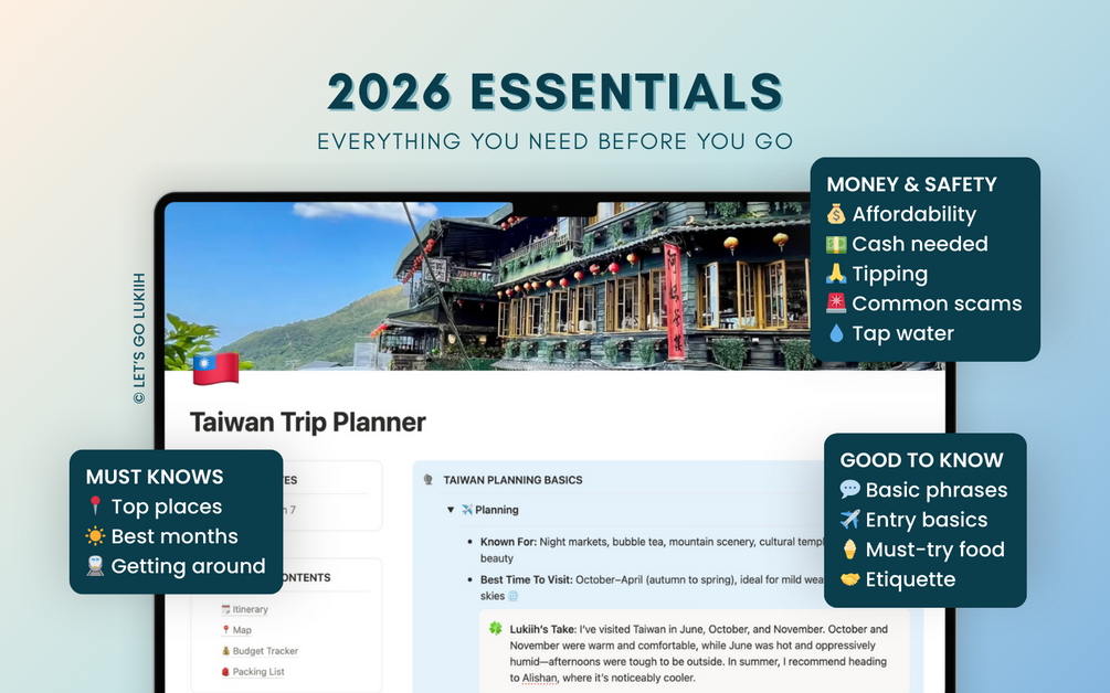 A thoughtfully designed Taiwan trip planner with a ready-to-use itinerary, refined across five trips and updated for 2026.