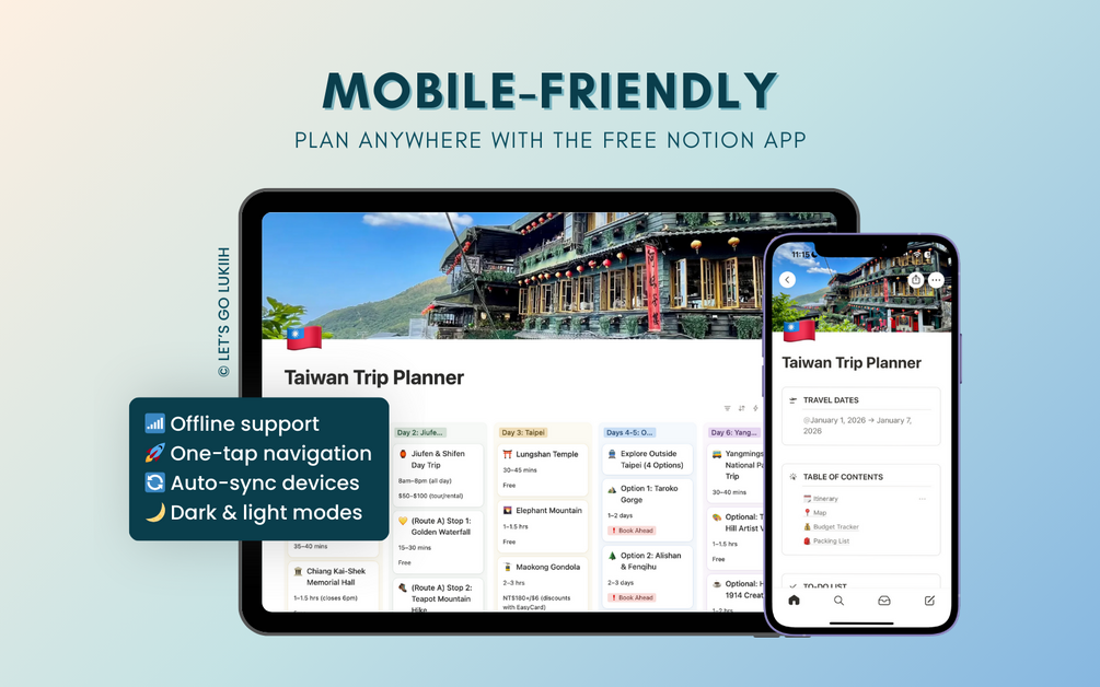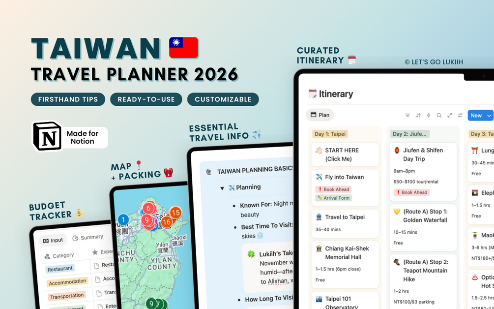 Taiwan Itinerary & Trip Planner 2026 (Notion)